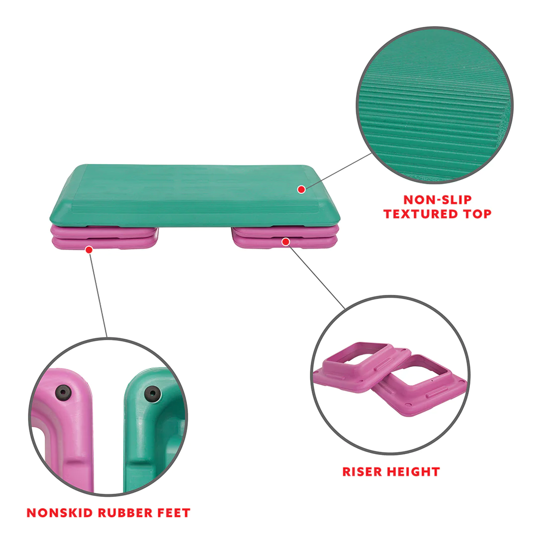 Step your way to a healthier lifestyle with this  Aerobic Step, featuring an adjustable height that caters to your desired fitness level. Step aerobics burn calories, improve coordination, agility, and increase leg strength. Make the  Deluxe Aerobic Step part of your fitness regime and see the results it can make!